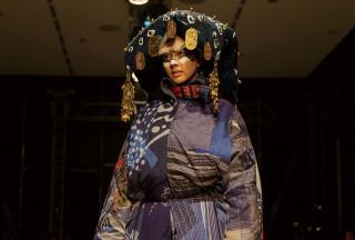 2014年にイスタンブールで開催したファッションショー。ヘッドピースには座布団を使用し、大判や古銭をスパンコールのように散りばめた。